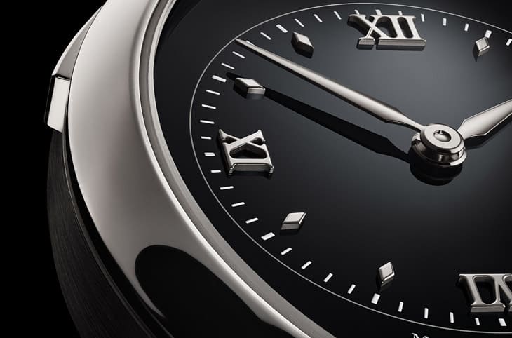 ▲表款素雅的黑色面盘其实是以大明火珐琅制作,搭配金质立体宝璣阿拉伯数字时标以及宝璣指针等,阅读效果相当清晰。