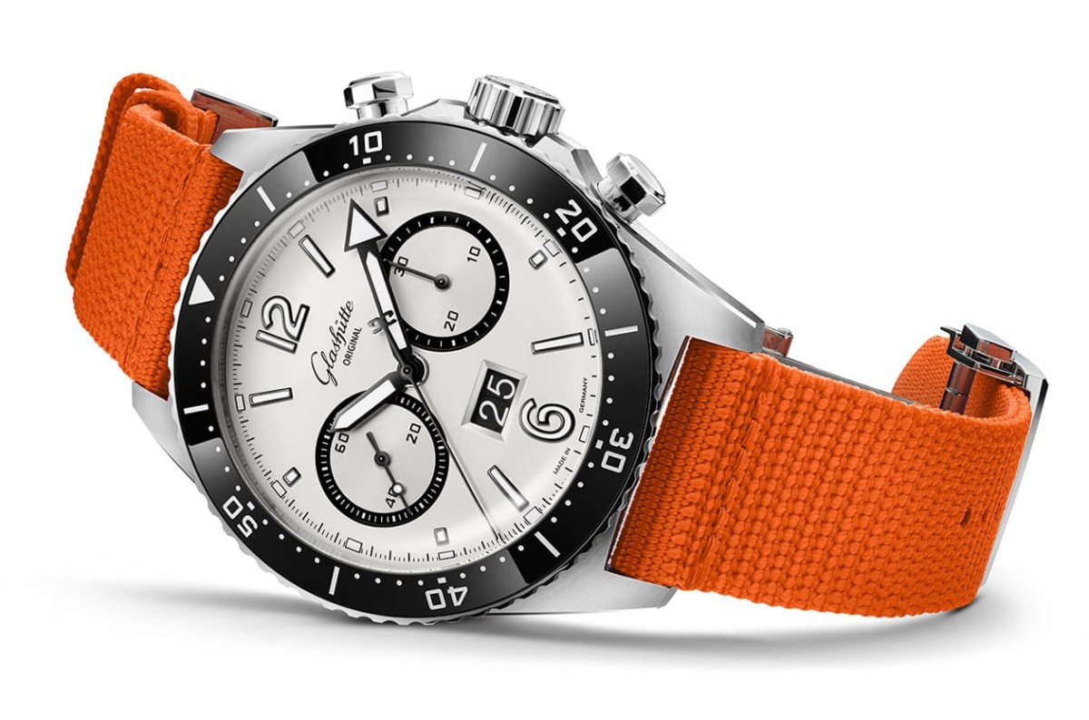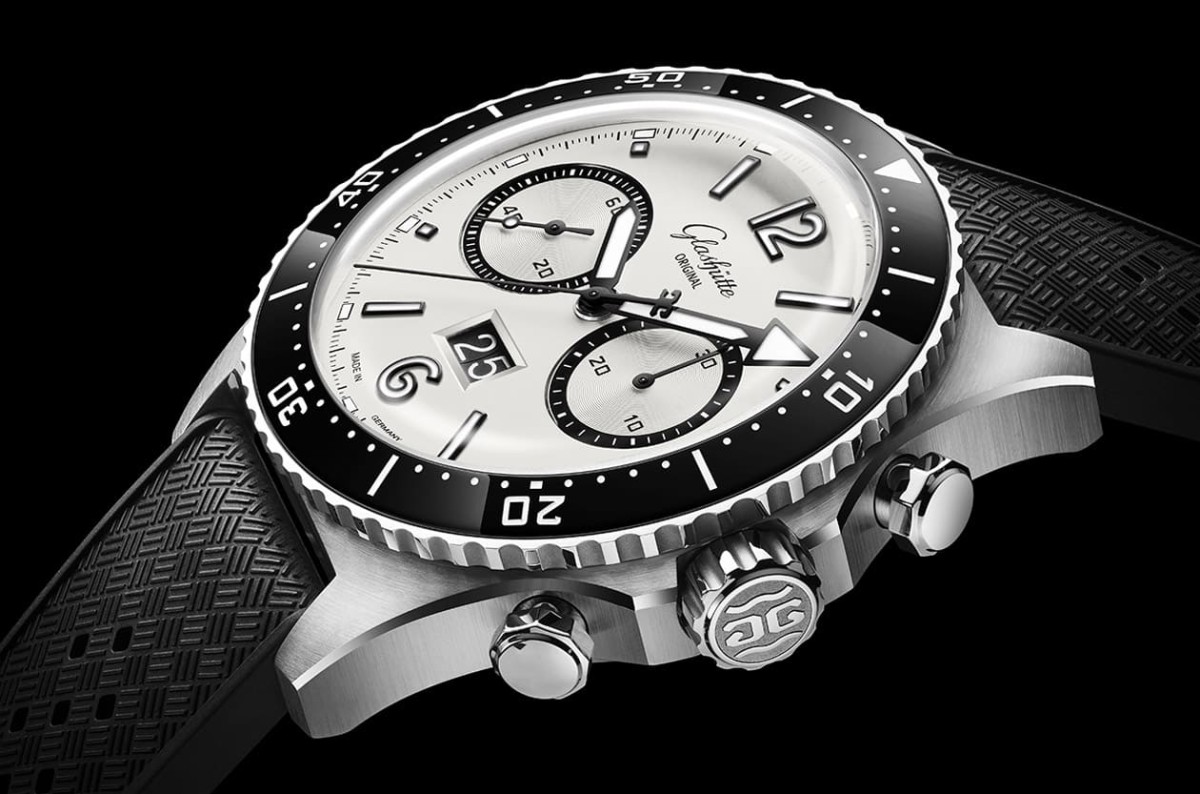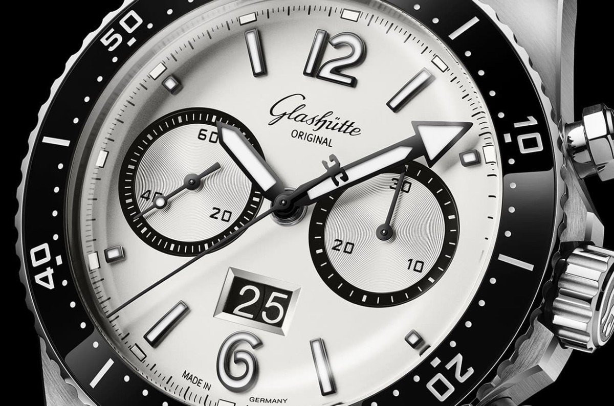 ▲格拉苏蒂原创新款SeaQ计时码表改用黑色陶瓷表圈搭配银白色面盘,塑造出风靡市场的「熊猫面」风格。
