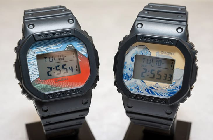 这两款手表均採用黑色树脂材质,并拥有当代DW-5600系列标准的48.9x42.8x13.4mm尺寸,如同G-SHOCK所有手表,它们都有耐冲击结构、200米防水性能,内部搭载的石英机芯功能多元,像是计时码表、倒数计时和闹铃等。手表外观呈现彻底的全黑,包括表圈上下的"PROTECTION"和"G-SHOCK"字样也都是清一色的黑,同时面盘外围原本详细註明的各式说明文字都不见了,为的就是留空间可以放上葛饰北斋深植人心的艺术杰作。