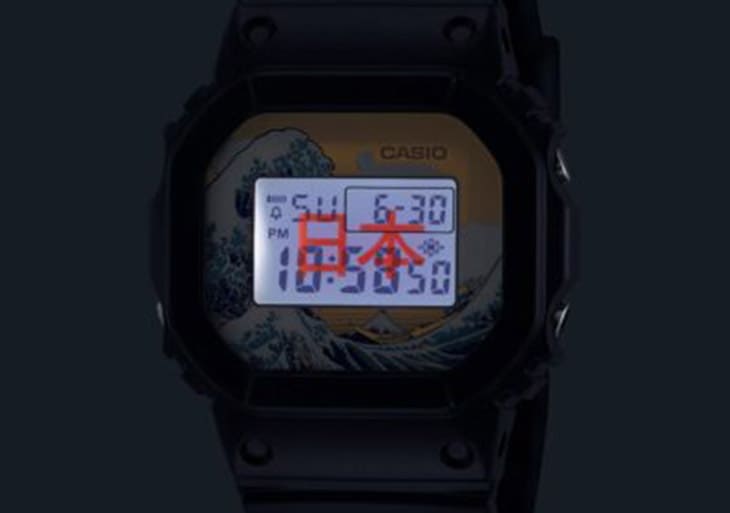 ▲G-SHOCK以日本传统艺术——葛饰北斋浮世绘为灵感催生两款新作,包括主题为《神奈川冲浪里》的DW-5600KHK25。