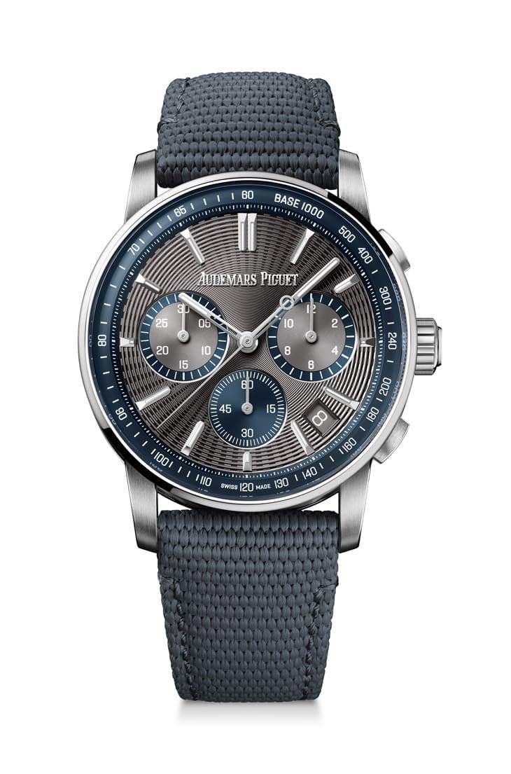 包含大三针与计时码表两款作品,两只表款延续CODE 11.59系列2023年作品的设计理念,新款以灰⾊⾊调面盘及表带搭配经典「云夜蓝50」细节,形成有层次的双色对比,同时表壳以不锈钢材质制作,为系列的入门款增添新选择。两款表皆採⽤符合⼈体⼯学的设计,面盘格局俐落简练便于判读时间。这两款钢壳的CODE 11.59展现出低调雅致的美学风格,让CODE 11.59系列可以保持全方位的丰富面向。