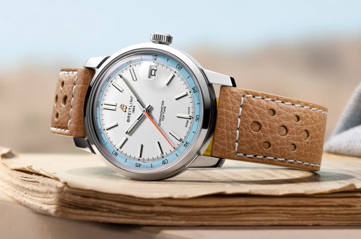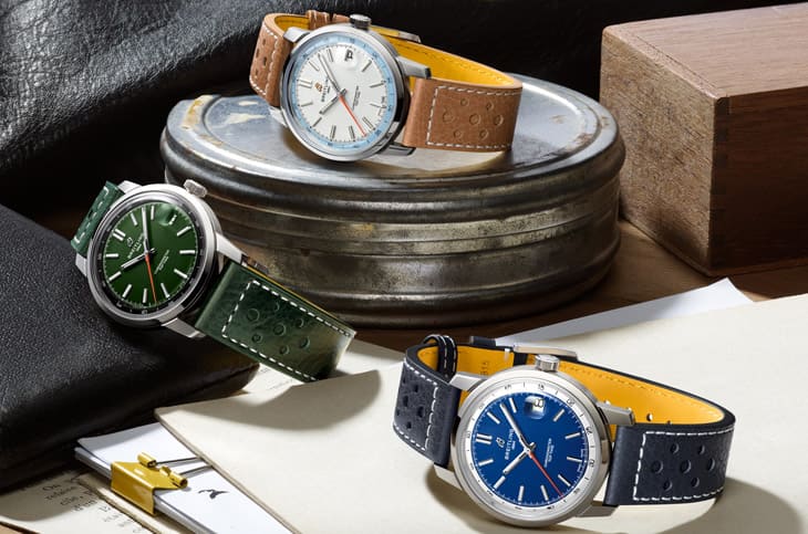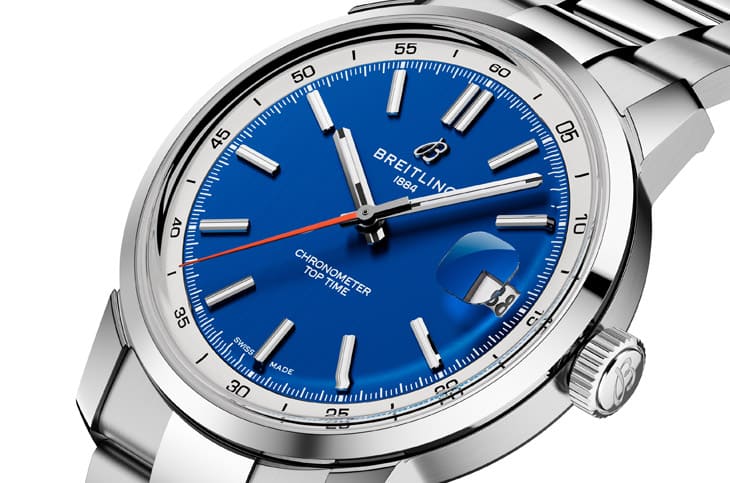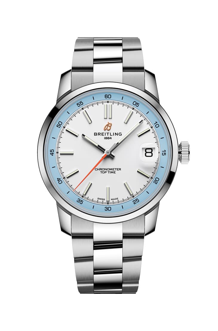 ▲奥斯汀巴特勒先前佩戴神祕手表为百年灵崭新打造的Top Time B31大三针,分别有三种面盘顏色款式。