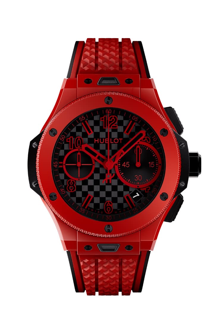 红色陶瓷材质/HUB1280自动上链机芯/时、分、小秒、日期显示/计时码表功能/蓝宝石水晶镜面、透明底盖/防水100米/表径43mm/限量100只/参考价:NT$ 982,000