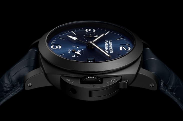 回到PAM01574身上,它最吸睛之处无疑是黑色陶瓷表壳,这种材质不仅强悍坚固、抗磨耐腐蚀,还兼顾轻盈与舒适性,对讲求佩戴体验的表迷来说可说是理想组合。沛纳海的陶瓷材质经过近年不断的研发,并强化了表壳上如表耳等最外部与最精细的零件,这些技术改良确保了表耳在日常佩戴中所承受的最大压力能够符合沛纳海严格的防摔标准。这次沛纳海主要採用磨砂工艺,少部分辅以拋光等双重处理陶瓷表面,由此塑造出富有层次的细节,让人感受到那股低调奢华的质感。
