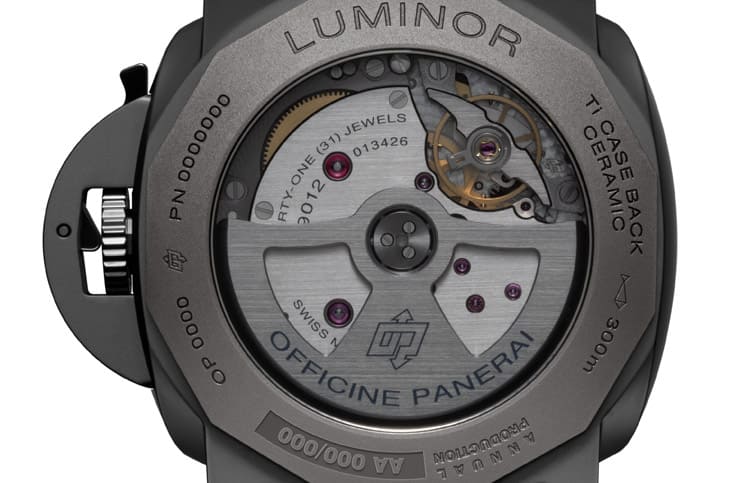 PAM01574搭载P.9012自动机芯,这款手表拥有三日动力储存,加上GMT两地时间功能,特别适合爱旅行、时常需要跨国移动的表主;而每当将表冠拉出之际,3点方向的小秒针会立即归零,让人对时校准可以更精准,而这一切所有的技术细节,其实都凝聚在迷人的烟燻蓝宝石底盖之下,这没机芯的结构映入佩戴者眼帘,低调中透着自信。