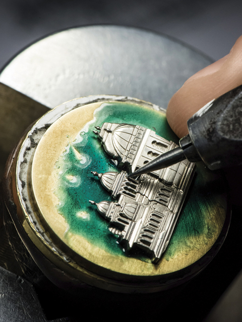这些薈萃各种工艺的面盘,其上静謐的风景活现多种精湛工艺,揉合金箔和内填珐琅技术、细致的微缩珐琅细节、透明和彩色珐琅工艺,加上雕刻工艺营造的质感,透过工匠大师们的巧手匠心,带领眾人在腕间一饗亚洲和印度之旅,以大胆创意完美揉合艺术与顶尖工艺,成就千锤百鍊、栩栩如真的艺术作品。