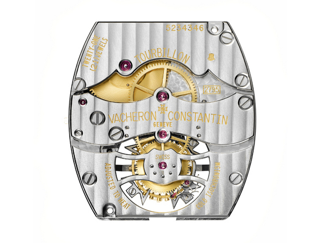 这款酒桶形机芯与表壳曲线完美贴合,完全由江诗丹顿自主研发和制造。陀飞轮框架的灵感源自品牌标誌「马尔他十字」徽号,巧妙地展现了每个机芯部件的精湛工艺,包括大量纯手工切割的内角。为了达到江诗丹顿设定的工艺标准,仅手工打磨陀飞轮横桥就需花费12个小时。这一技艺在法语中称为berçage,主要是将横桥的两端銼成规整的圆锥形和半圆柱形,同时避开中心和侧端部分。制表师在最后的操作步骤中用石材、拋光轮、木钉和特制的打磨剂将边缘打磨平整,力求呈现完美的拋光效果。