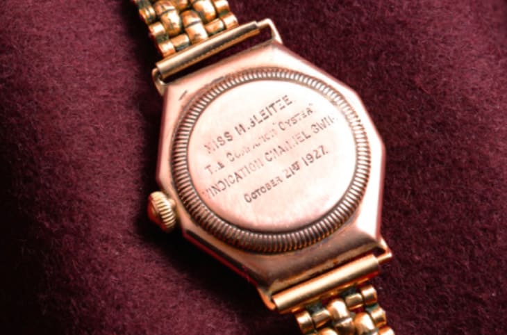 ▲手表底盖鐫刻「1927年10月21日」及佩戴者姓名,完整纪录「雪耻之游」的历史时刻。Source:Sotheby's