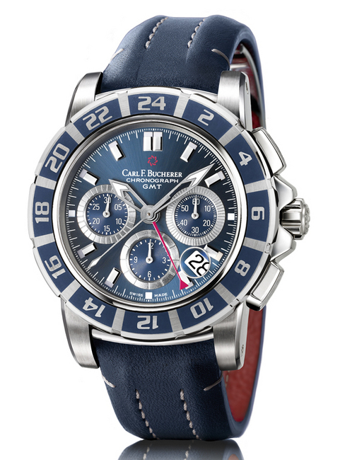 柏拉维 TravelGraph两地时间计时码表令您可于外地度岁时,仍然能够与身在家乡的亲友一同迎接新春的到来。红色的第二时区指针能够在旅途中为表主显示目的地与出发地时间,透过印有24小时刻度,以精钢和橡胶制作的双向旋转表圈,更能轻鬆读取第叁时区时间。第二时区指针由表冠设定,更能随之自动调校位于4时30分位置的日历显示,同时并不会影响时分针的运作,工艺细心而精密。手表的CFB1901自动上链机芯为手表带来精准的计时功能,随时准备好为您提供准确的报时与计时服务,无论是出行或平常使用,都能够成为您的最佳搭挡。此款手表设计以蓝色为主调,线条带有强烈的运动风格之餘,配合耐用的小牛皮表带,同样不失优雅气质。