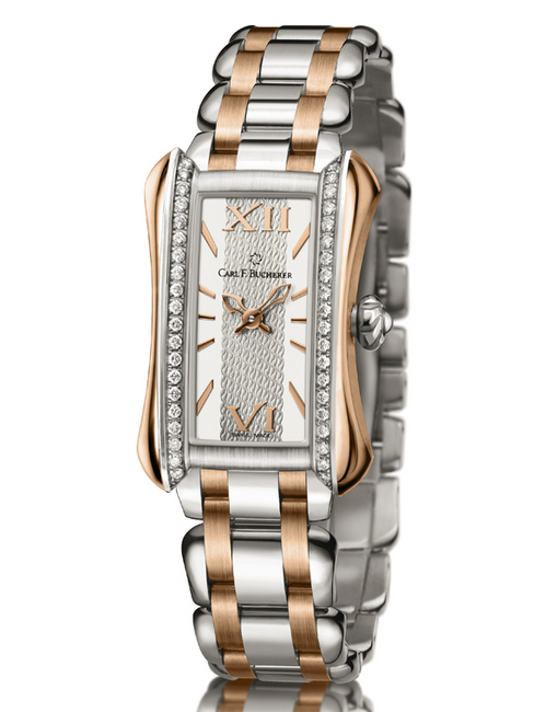 宝齐莱雅丽嘉女装手表系列是对女性美的讚颂,设计婉约大方,永不过时。随着新一年的开始,以18K玫瑰金和精钢精心制作的雅丽嘉Mini TwoTone手表奖励自己过去一年的努力,并以此迎接新挑战。两种物料的组合高贵典雅、不落俗套,并巧妙地融入雅丽嘉系列长方修腰表壳的曼妙曲线之中,夺目迷人。向以顶级珠宝工艺闻名的宝齐莱更为此型号带来华丽璀璨的镶钻版本,40颗共重0.3克拉的FC TW vvs美钻,在表壳两旁整齐排列,为这款优雅的代表作更添姿采。