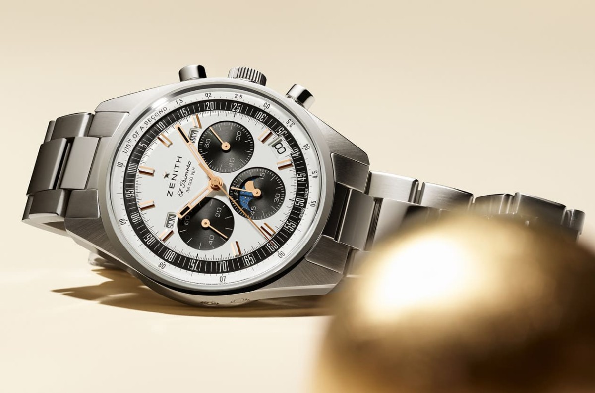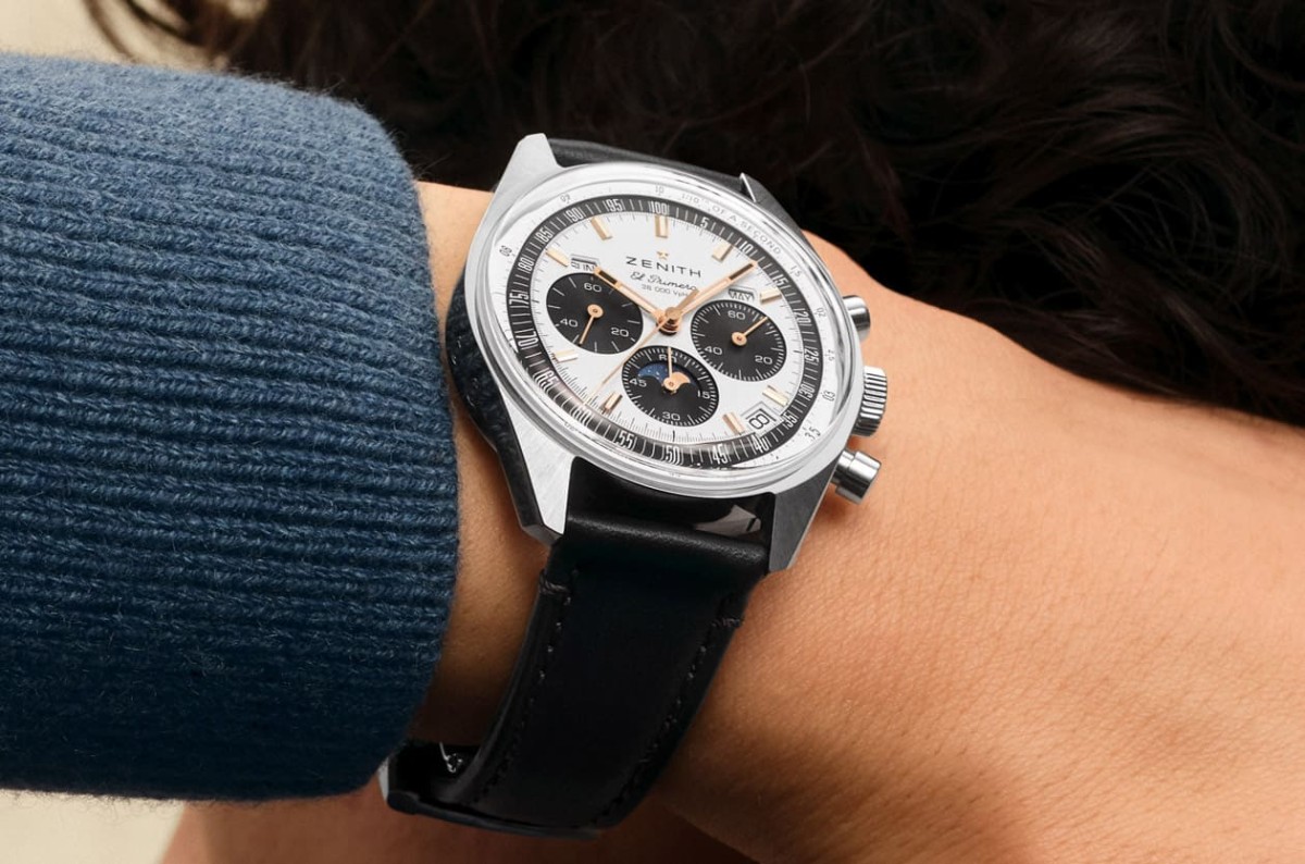 最迷人之处在于其功能整合:计时、全日历(日期、星期、月份)以及月相皆浓缩于小巧面盘上,10点与2点方向分别设有星期与月份显示,而月相巧妙融入6点钟的60分钟计时盘内,让复杂功能不会充塞整体布局,ZENITH以精准的视窗位置与对称美学,使资讯丰富但阅读清楚,是功能腕表中罕见的实用与优雅兼备案例。
