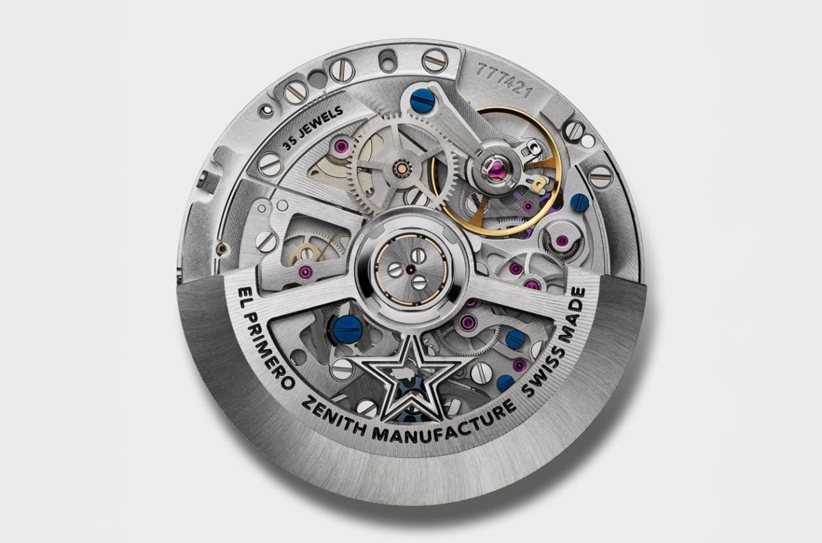 ▲El Primero 3610高震频机芯可测量1/10秒,配置全日历仍维持60小时动力,日常使用稳定可靠。