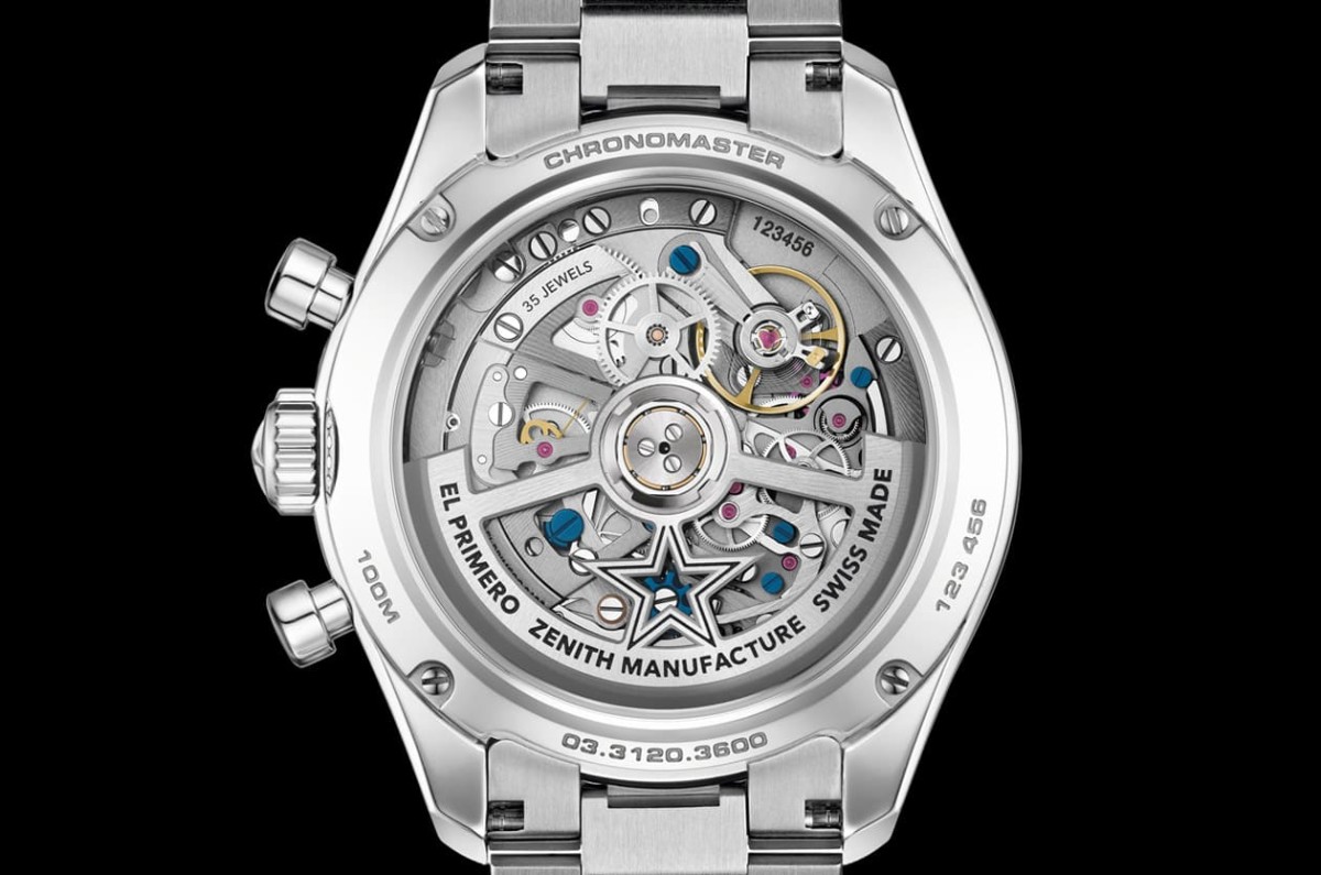 ▲搭载El Primero 3600机芯,5Hz高震频、60小时动力并採导柱轮结构,透过透明底盖能欣赏机芯律动。