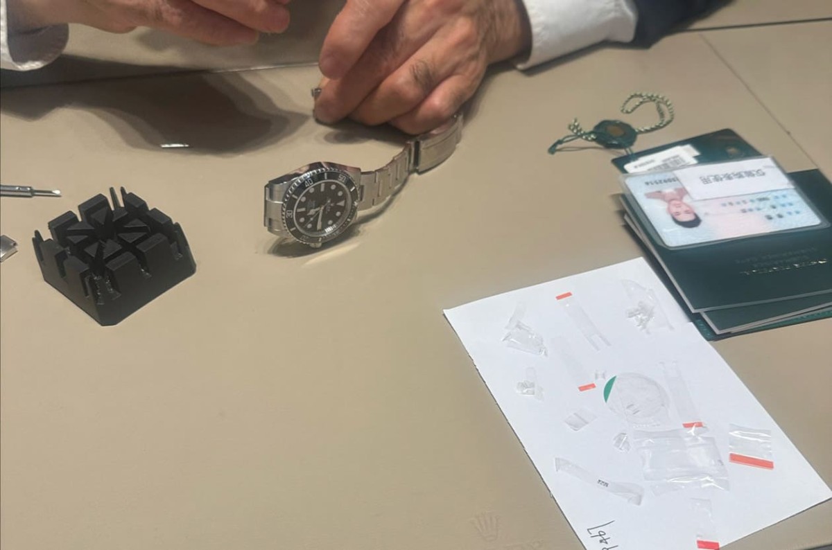 ▲表友在1个月内经历三温暖般的买表历程,阴错阳差买到自己最想要的黑水鬼,提表当下表店师傅帮他调整链带长度。Source:Xbiao