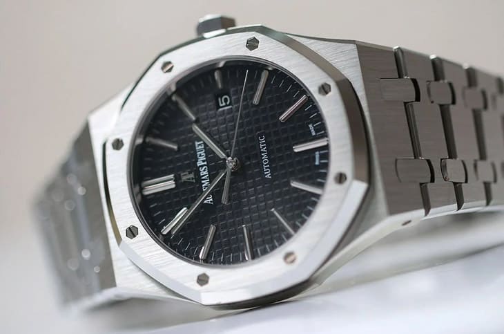 即便已经停产,Royal Oak 15400ST依旧在市场上保持高度活跃。41mm的尺寸曾在推出之初引发讨论,但时间证明,这正是它能被广泛接受的关键,对多数现代佩戴者而言,它在存在感与舒适度之间取得了良好平衡。设计上,它完整延续Gérald Genta的皇家橡树血统,包括Grande Tapisserie格纹面盘、一体式表带与纤薄比例,使其在众多运动钢表中始终具有高度辨识度。15400ST在二级市场的表现,反映出市场对较大尺寸Royal Oak的持续需求,也再次确认这个设计早已超越流行周期。