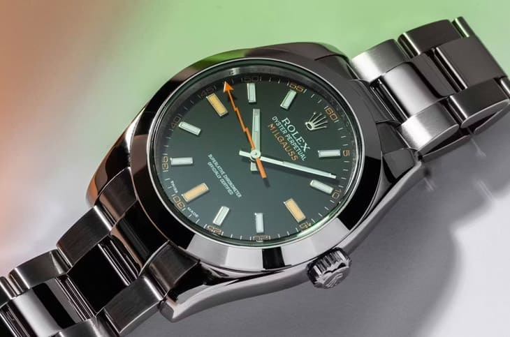 劳力士为欧洲核子研究组织(CERN)科学家打造的Milgauss,能抵抗1000高斯磁力,设有软铁内壳、闪电秒针、绿色水晶镜面,让它在劳力士家族中显得格外另类,它不是主流,但在懂行的收藏家眼中,却有着难以取代的位置。