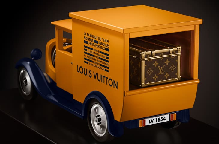 ▲货车尾部行李厢内放置一只依比例缩小的Monogram迷你行李箱,重现早年运送行李的经典场景。