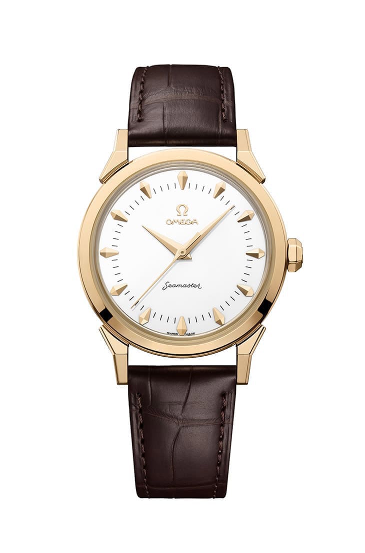 2025年2月,距离冬奥开幕刚好一周年,欧米茄当时一面在米兰大教堂广场设置巨型倒数钟,并同步发表第一款纪念表——海马37毫米Milano Cortina 2026,这款作品偏向正装风格,带有复古韵味,37mm表径精巧优雅,表壳採用品牌独家18K Moonshine™金,色泽比传统黄金更柔和且抗褪色,六角形表冠与摺角表耳复刻自早期海马系列,搭配棕色鱷鱼皮表带,散发绅士气息。