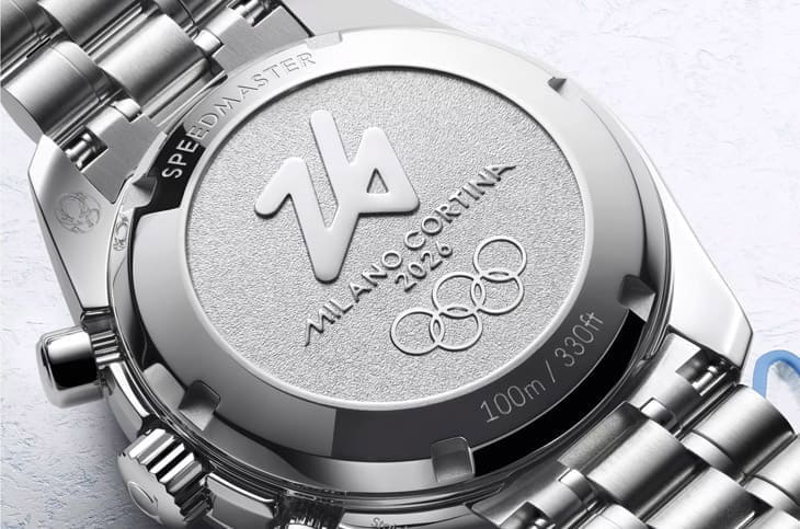进入冬奥倒数100天的2025年10月底,欧米茄推出第二款重磅之作——Speedmaster Milano Cortina 2026,这款手表沿用38mm不锈钢表壳,搭配全拋光竖琴式表耳,呼应Speedmaster Reduced经典款式,配色以冰雪蓝白为主,象徵冬奥纯净氛围。