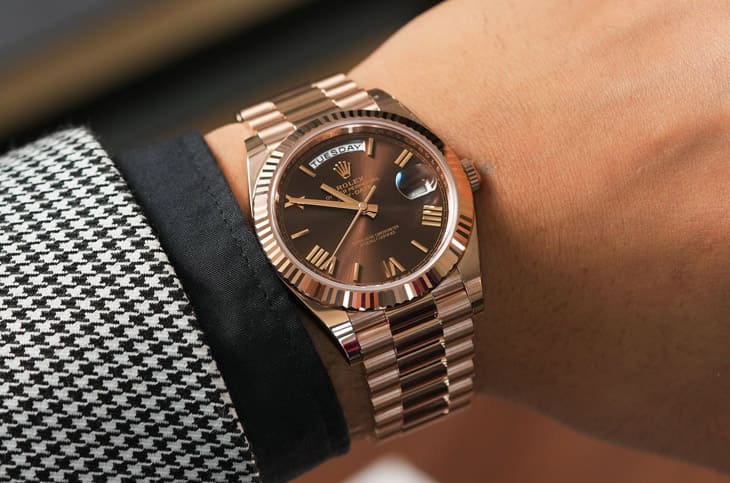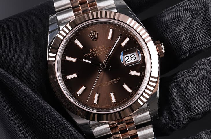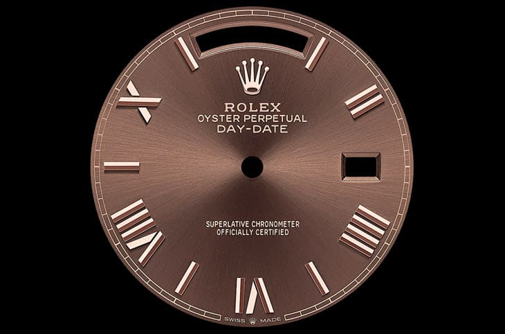 若打算入手巧克力劳力士,建议从两个方向思考。第一,确认原厂面盘,观察太阳纹是否细腻、光泽是否具流动感,是辨识关键,改装盘通常缺乏层次与深度。第二,釐清佩戴目的,若想兼顾日常与投资,Datejust 41是弹性最高的选择;若追求象徵意义与纯金份量,Day-Date 40则更具收藏感。