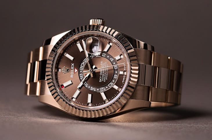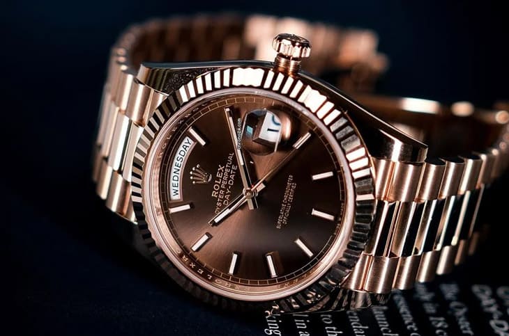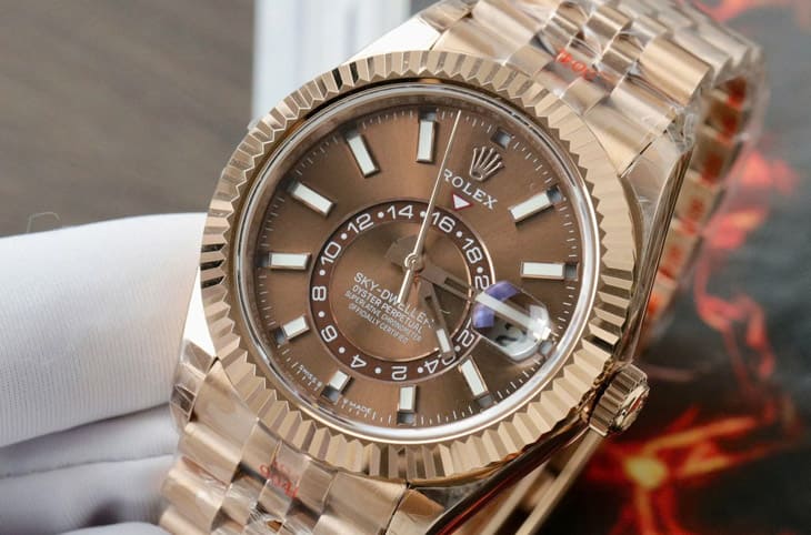所谓巧克力劳力士,并不是官方命名,而是市场对于「巧克力色太阳纹面盘+18K Everose永恒玫瑰金」这组合的统称。那种深邃而温润的棕色,在光线下游移于可可与焦糖之间,搭配玫瑰金的粉红光泽,整体视觉既高贵又带点柔和,少了黄金的张扬,多了成熟气质,这样的配置活跃于Datejust、Day-Date、Daytona、Yacht-Master与Sky-Dweller等系列,成为劳力士暖色系美学的代表元素。