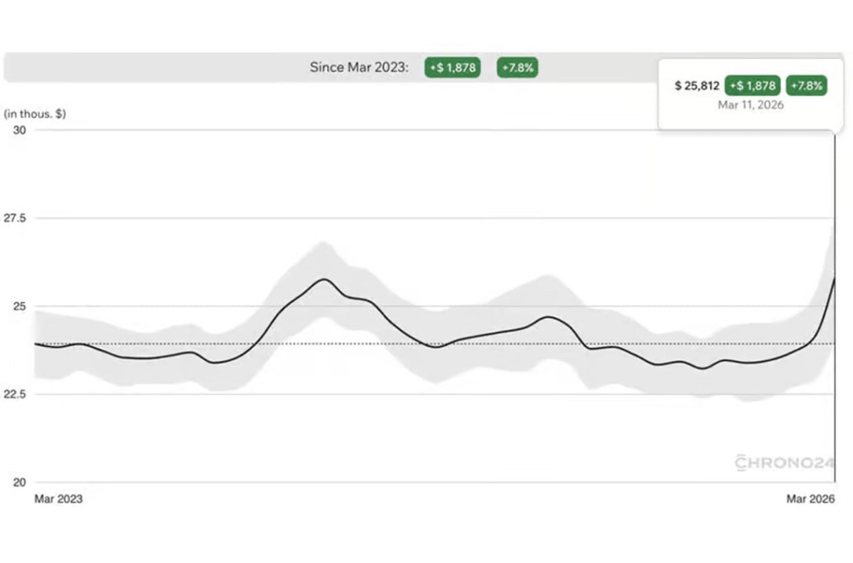 自从停产传闻传开后,二级市场反应还蛮有感的,根据Chrono24的数据,停产消息前,全新百事圈平均价格约23,000美金(约合台币73万);消息传出后,瞬间升至25,500美金(约合台币81万)左右,与官方订价相比,搭配Jubilee五珠带的官方价格为NT$ 406,500,Oyster三板表带则略低一些,NT$ 399,000。换言之,现在二级市场价格几乎是官方定价的两倍,低于2万美金的交易几乎消失,部分卖家开价甚至逼近3万美金。这股价格飆升,背后除了投资心理与预期,更反映了市场供需结构的急剧失衡,与2025年同期相比,百事圈需求量暴增500%!同时市场供应下降约25%,这种高知名度设计加上稀缺预期,促成价格短期内持续上扬。