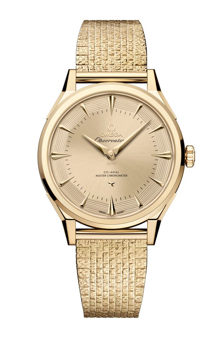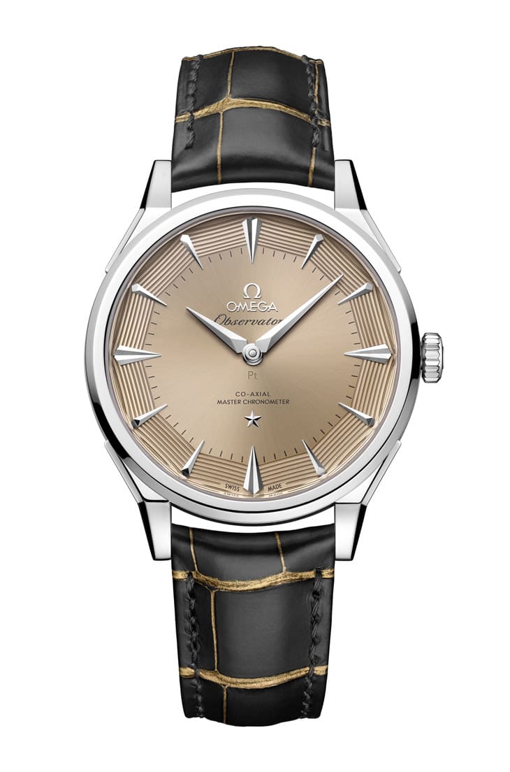 其中Moonshine金版本搭配九排砖纹金属链带,复古味直接拉满,而最顶级的铂金-金款式,不只表壳採水平拉丝处理,连面盘都经过特殊PVD调色,呈现出低调却极具辨识度的质感。值得注意的是,这是欧米茄首次在同一系列中完整展示四种专利贵金属,也让这个系列在材质表现上达到前所未有的完整度。