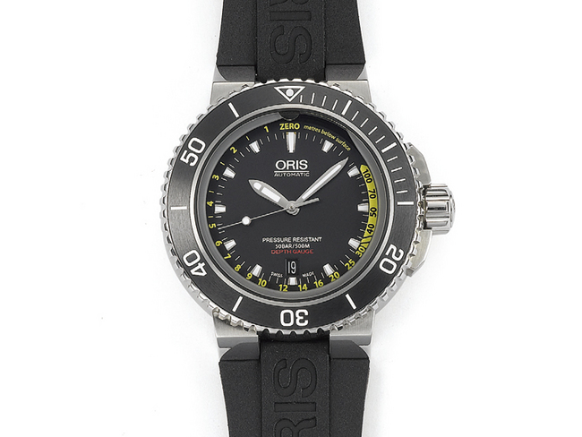 ORIS豪利时的这款深度计潜水表在2013年的Baselworld上获得了普遍的好评;事实上要不是因为深度计实在算不上是一般日用的功能,笔者个人认为这款以它所提示的产品逻辑,甚至足以赢得2013年度日内瓦鐘表奖的小指针奖(虽然实际上它并没有入选)。