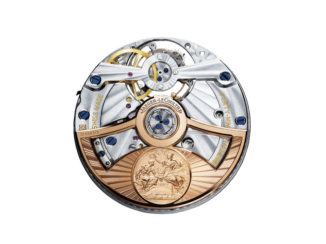 蓝宝石水晶让人得以一览手工装饰细节,装饰工序遵循最纯粹的传统制表工艺。22K金摆陀的设计来自积家于1889年巴黎万国博览会所获得的金质奖章,当时万国博览会以此奖章奖励品牌的制表专业和创新精神。透过表镜亦可欣赏飞行陀飞轮的圆柱游丝,时计内的复杂功能彷彿在另一个制表空间中演变幻化。