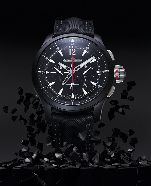 Master Compressor Chronograph Ceramic大师系列陶瓷计时手表直径为46毫米,是一款专为足跡遍及全球的运动家而打造的精准时计。所有显示功能华丽地佈局于黑色半哑光表盘之上,每一项均拥有绝佳的可读性。手表中心设有两枚鏤空夜光指针指示小时和分鐘,与之相伴的是一枚醒神的红色计时秒针,而採用金银丝细工制成的第二时区指针则在旁映衬。这样的佈局在保持手表可读性的同时,确保佩戴者一瞥便能取得最重要的资讯。为满足旅行家的需求,该手表的双时区功能借鉴表厂独创的「本地时间/目的地时间」概念,并加入了不可或缺的昼/夜显示功能,该功能位于「Jaeger-LeCoultre」字样下方的视窗中。