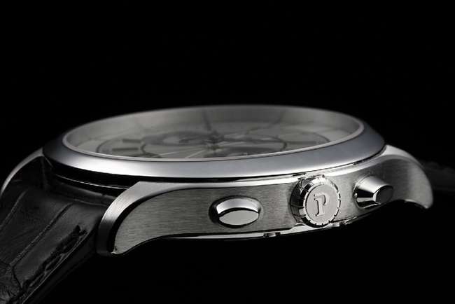 计时按把也沿用了这个系列的语汇,採用了椭圆形的切面,而且是上窄下宽的锥形,以目前市面上按把的样式来说相当新鲜,让整只表到处都看得到原创性。