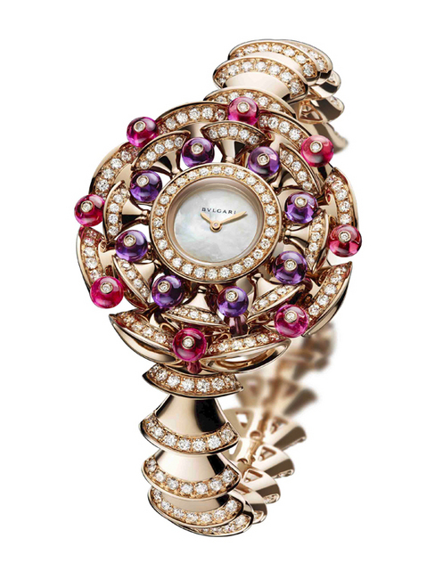 Diva 手表系列便包含了回味上述经典场景的情调,以此为主题于 2013 年推出,即以顶级订制珠宝 Haute Joaillerie 繽纷多彩的表达方式呈现;设计灵感来自当代巨星,掌握了华贵的气韵,张扬了优雅的魅力,反映了当代女性偶像的光芒。系列中每一项创作都反映了女子的性格,而这些女子与 BVLGARI 共同投射出一种混合了华美、魅力、性感、热情的气息。
