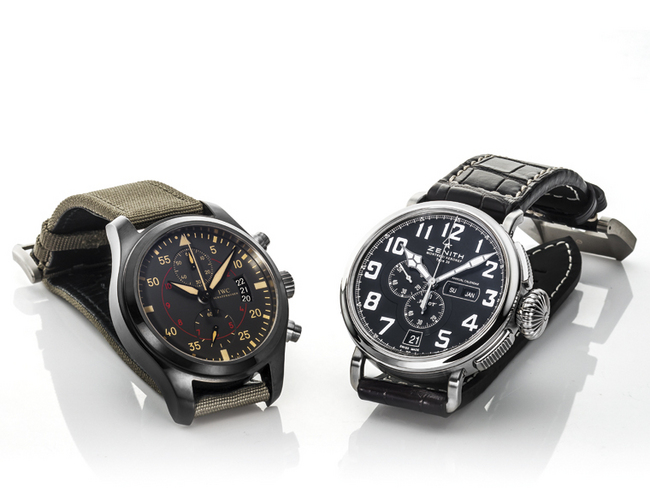 ▲ 左为 IWC Pilot Top Gun Miramar Chronograph,右为 ZENITH Montre d'Aeronef Type 20 Annual Calendar