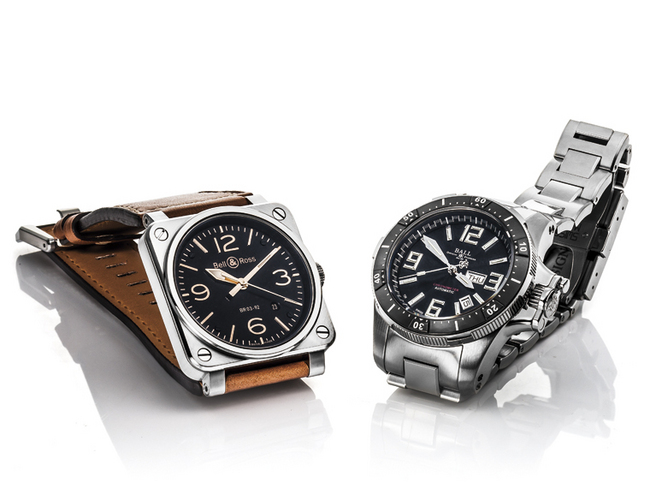 ▲ 左为 BELL & ROSS BR03-92 Golden Heritage,右为 BALL WATCH Engineer Hydrocarbon Airborne