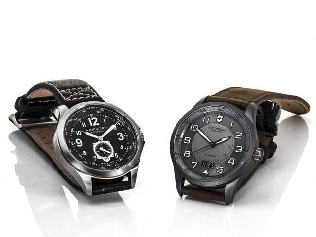 ▲ 左为 HAMILTON Khaki Aviation QNE,右为 VICTORINOX SWISS ARMY Airboss鈦金属限量版