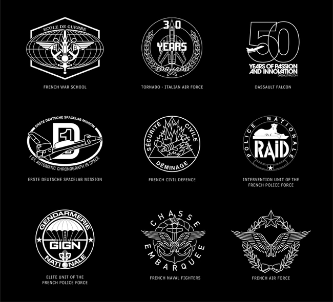 此两款限量纪念版有独一无二的设计细节:棕色表盘及棕色皮带,復刻六十年代手表气质,表盘6时位置饰以Falcon客机轮廓图案,而表背水晶玻璃有"50 years of Bell & Ross为特种部队制作的手表,完全符合有关机构指定的要求及功能。例如Type Démineur手表的防磁表壳设计,符合扫雷人员的安全要求。Pilot Type Aéronavale飞行计时表的双向旋转凹坑纹表圈有60分鐘刻度,配合战斗机飞行员执行任务时的计时考虑。又例如BR 03-92 GIGN, BR 01 RAID及BR 03 TORNADO的夜光时标及特大数字,完全符合法国特种武器和战术部队(Special Weapons and Tactics Force)对手表在白天黑夜环境中依然清晰显示的标准。BR 03 Type Aviation的多功能机芯,亦完全达到法国空军战斗机机师的需要。