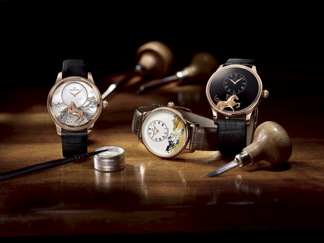 2014年适逢中国马年,发展之初与中国颇具渊源的雅克德罗,不仅推出马年主题手表应景,更一口气运用鐫刻、微绘、内填、大明火珐琅等多样技法,描绘出阿拉伯骏马、美国野马与横越中国长城骏马的颯爽英姿。
