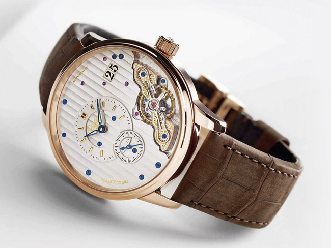不仅如此,不少表厂更为专注于手表的艺术 呈现,像是颠覆以往我们认为较为阳刚的运动 手表,瑞宝便首度在计时码表领域做了半鏤空设计,发表一款Timemaster Chronograph Skeleton,而雅克德罗的大秒针运动手表,此次刻意在面 盘上大作日内瓦波纹,展露另一番运动绅士风范。宝铂的Villert大叁针不仅是做大明火珐琅面盘,还特别在V-VI(5~6点)与VII-VIII(7~8点)处浮雕出JB标誌,隐藏版刻记低调向品牌工艺致意,更可让表迷把玩时细细玩味。2014年适逢中国生肖马年,年初以来已经有多家表厂推出生肖纪念表,而品牌成立之初就与中国紧密相连的雅克德罗,则运用鐫刻、微绘、内填与大明火珐琅等技艺推出叁款各具特色的马年腕