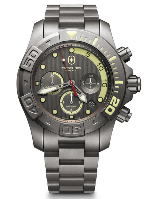 ▲VICTORINOX SWISS ARMY-Dive Master 500 为庆祝品牌进军高级表坛第25个年头,此次维氏刀在Dive Master系列中推出首款限量手表Dive Master 500,以灰色为主调,但是面盘外缘的20分鐘弧形刻度与单向旋转表圈的20分鐘倒数计时十分显目。