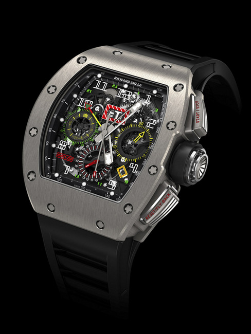 新问世的RM 11-02延续品牌七年来最受欢迎的RM 011型号,令阵容更加鼎盛。RM 11-02手表搭载RMAC2自动上鍊机芯,较之前RM 011手表的RMAC1机芯,新增多项功能特点。具有飞返计时功能,超大日期显示万年历,60分鐘倒计时,24小时计时盘等,世界时间(UTC)显示,并配有Super-Luminova超亮夜光材料指针。机芯的底板与桥板为5级鈦合金材质,配双发条盒装置和可变惯性平衡摆轮,能提供50小时的动力储存。