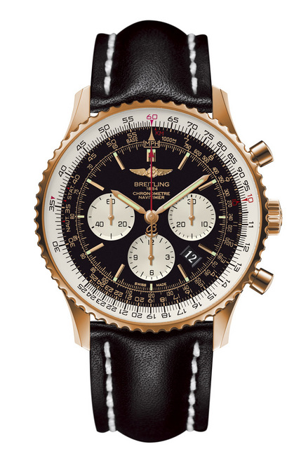 向来放眼世界,时刻准备起飞,BREITLING Navitimer航空计时手表无疑是您最值得信赖的驭风飞行伙伴。全新BREITLING Navitimer GMT航空计时世界时间手表的推出再次印证了这一使命:BREITLING大胆创新,将环球旅行者的精神内涵完美融入这款全新时计中。手表为佩戴者提供了便捷的操作体验,由搭载超级实用的全表冠调节创新双时区系统的BREITLING自家04机芯驱动,可透过透明蓝宝石表底一窥其精密运转。佩戴者只需拉出表冠向前或向后旋转,即可以小时为单位将时针和日期迅速调节至旅行所至的时区,同时保持家乡时间的24小时时制显示,而丝毫不影响分针走时。大气非凡的48毫米表径,超大号的精钢表壳,确保了有如仪面盘般的最佳可读性。全新时计提供两款面盘可选——经典黑色面盘搭配银色计时小面盘或全银色款式,还可选配精钢表链或小牛皮/鱷鱼皮表带。另有限量200枚的黑盘红金版可选。