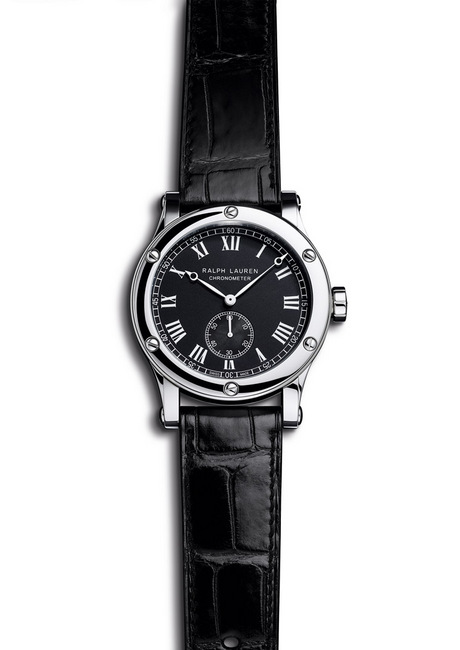 RALPH LAUREN Black Label 男士系列集赛车感和光滑的表身边缘于一身,散发着復古情怀,RALPH LAUREN Sporting Classic Chronometer的精钢表壳搭配白色罗马数字和「铁轨」式分鐘刻度的黑色磨砂面盘,耀眼夺目,美不胜收。本系列的动力源自通过COSC认证的RL366 机芯,震盪週期为28,800vph,外观结合了日内瓦波形饰纹与鱼鳞饰纹,自动上链的手表指示出小时和分鐘,6点鐘位置有小型铁轨式秒鐘小面盘。宝璣式指针的古典美结合精湛工艺的机件,RALPH LAUREN Sporting Classic Chronometer大胆融合了传统与现代,彰显出品牌的大师级制表技术。