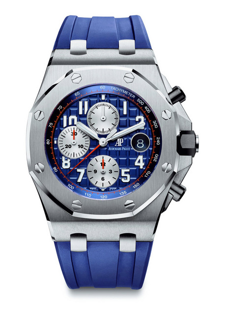 ▲ 爱彼皇家橡树离岸型42毫米海军款计时码表色彩鲜艳十分吸睛。建议售价NT7,000元