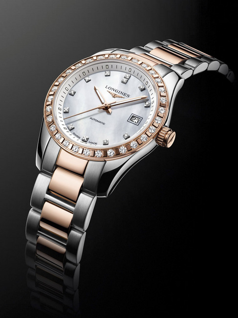 ▲ 优雅形象大使林志玲最喜爱的手表浪琴表康铂金系列精钢玫瑰金钻石女表,优雅之中带着雅致的光芒。