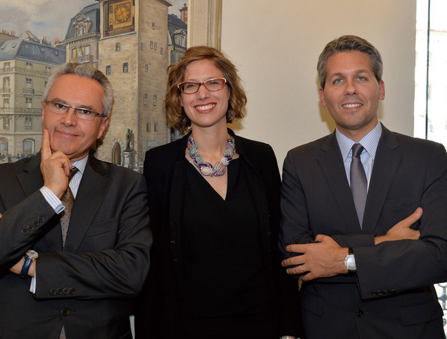 2013年5月1日开始的「时间之歌」特展是江诗丹顿与「Art en Vielle Ville」协会合作回顾品牌从古至今的经典问表作品,图中为品牌瑞士总经理Heinz Forrer、 「Art en Vielle Ville」协会的Charlotte Mailler与品牌行销总监Julien Marchenoir。