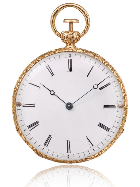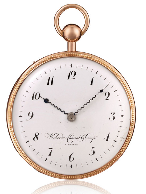 年份:1839年黄金材质,二问报时功能。珐琅面盘搭配12个罗马数字时标,搭配轨道式分鐘刻度。