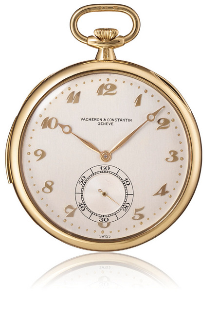 年份:1938年18K金材质,叁问报时功能。银质面盘搭配12个阿拉伯数字时标,小秒盘位于六点鐘位置,配轨道式分鐘刻度。