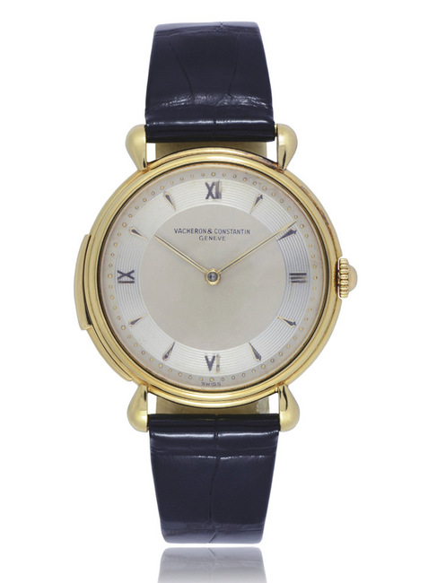 年份:1950年18K金材质,叁问报时功能。银质雾面面盘上饰有机刻雕花小时刻度圈,金质和箭形与罗马数字时标,搭配黄金釦表带。