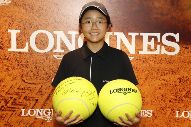 对于能得到偶像张德培鼓励,今年香港区代表梁筠彤表现得相当兴奋,她表示:「我一直视张德培为学习榜样,希望日后能跟他一样成为一位出色的网球运动员,参与不同的国际赛事,代表香港争取好成绩。今次能代表香港参与LONGINES发掘未来网球冠军锦标赛,更有机会接受前职业球手巴托莉 (Marion Bartoli) 的专业指导,并踏入法网场馆,是我梦寐以求的体验。」现年12岁的Justine自小便对网球运动充满热诚和兴趣,去年更于雅加达亚洲网球协会网球巡迴赛2013中,勇夺女子14岁或以下双打亚军及单打4强资格,并在「LONGINES Future Tennis Aces 2014发掘未来网球冠军——香港区代表选拔赛」中以局数2比1胜出,取得代表香港参赛的资格。