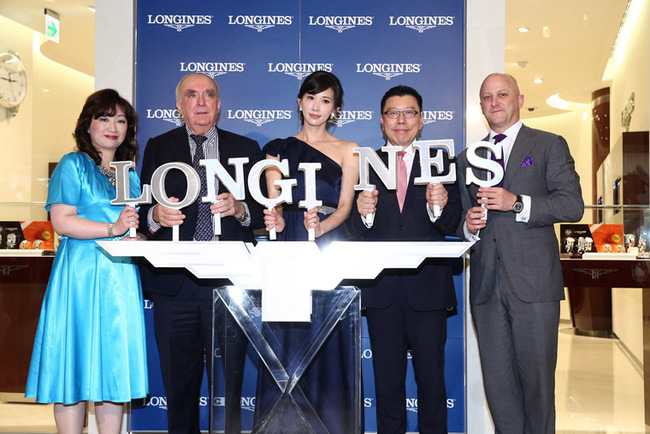 ▲ 浪琴表台湾区副总经理张正勋,浪琴表全球总裁Walter von Känel,林志玲与台北101购物中心总经理戴荫本先生以及Swatch集团台湾分公司总经理Peter Szabo为浪琴表台北101全新旗舰店进行开幕仪式。